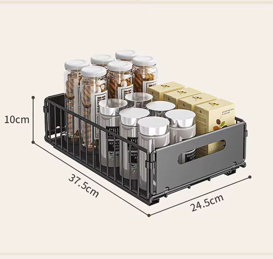 Slide-Out Storage Organizer 37.5x24.5x10 cm Matte Black Rustproof Carbon Steel Pull Out drawer Tray with Adhesive Taps and Screw Installation for Bathroom Cabinet, Under Sink, Dresser